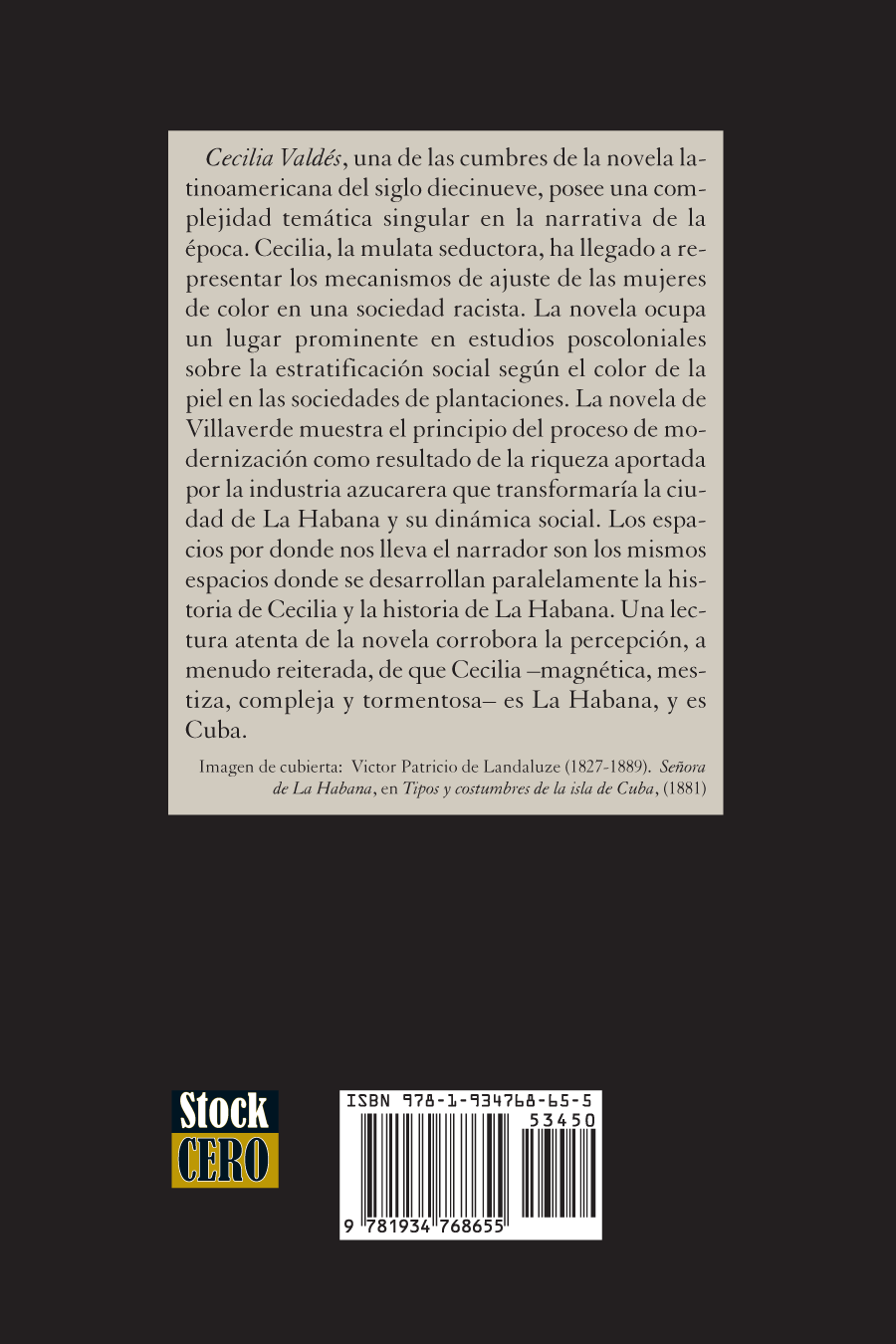Cecilia Valdés (1882) is arguably the most important Cuban novel of the 19th century. Cirilo Villaverde creates a vast panorama of colonial Havana society, exploring the complexities of race, slavery, and class through the tragic story of the beautiful mulatta Cecilia and her incestuous romance with the Spaniard Leonardo Gamboa.