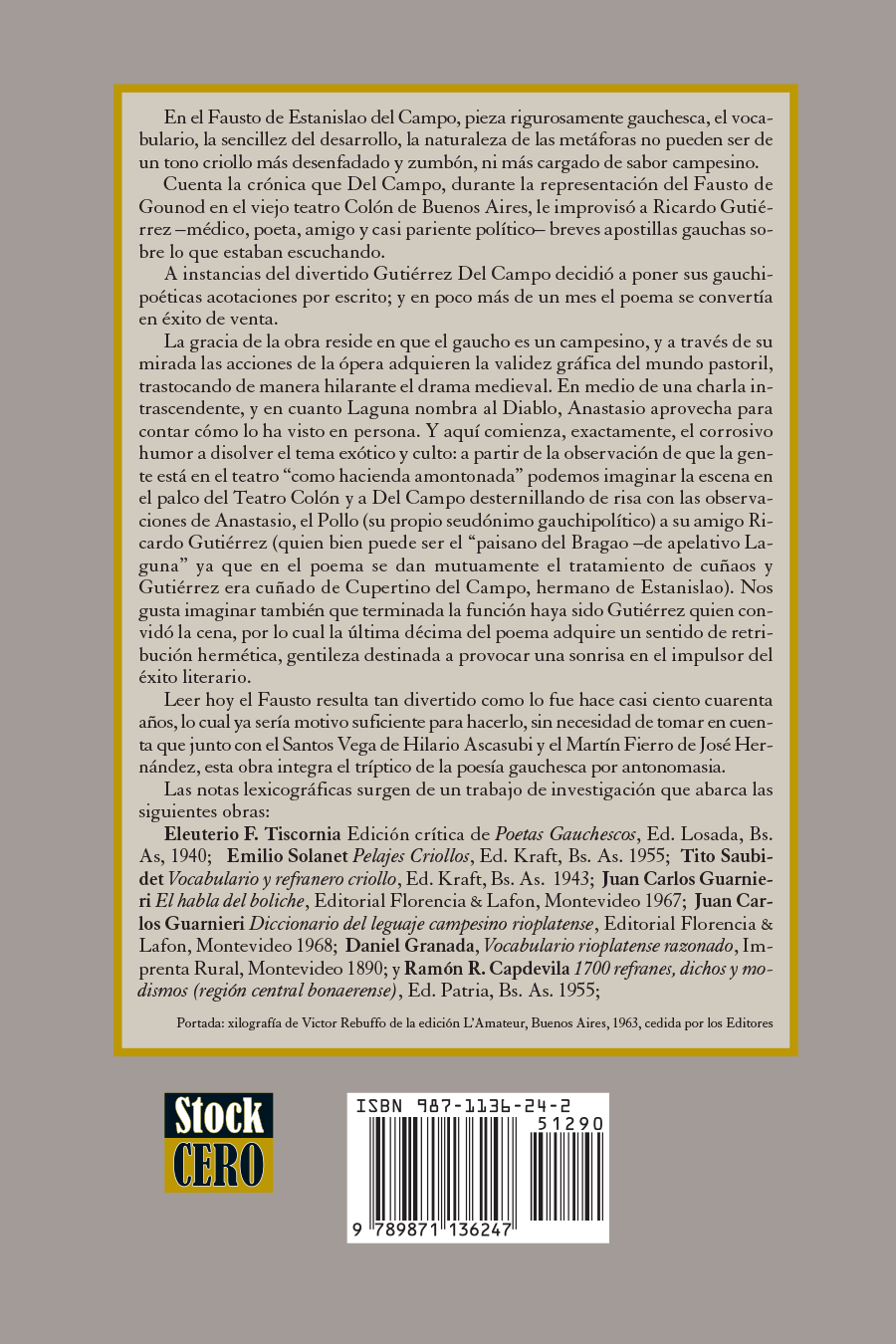 Stockcero's Edition: The lexicographical notes included in this edition arise from a careful research process, consulting works by Tiscornia, Solanet, Saubidet, Guarnieri, and others, ensuring that the student fully comprehends the richness of the Rioplatense rural language.